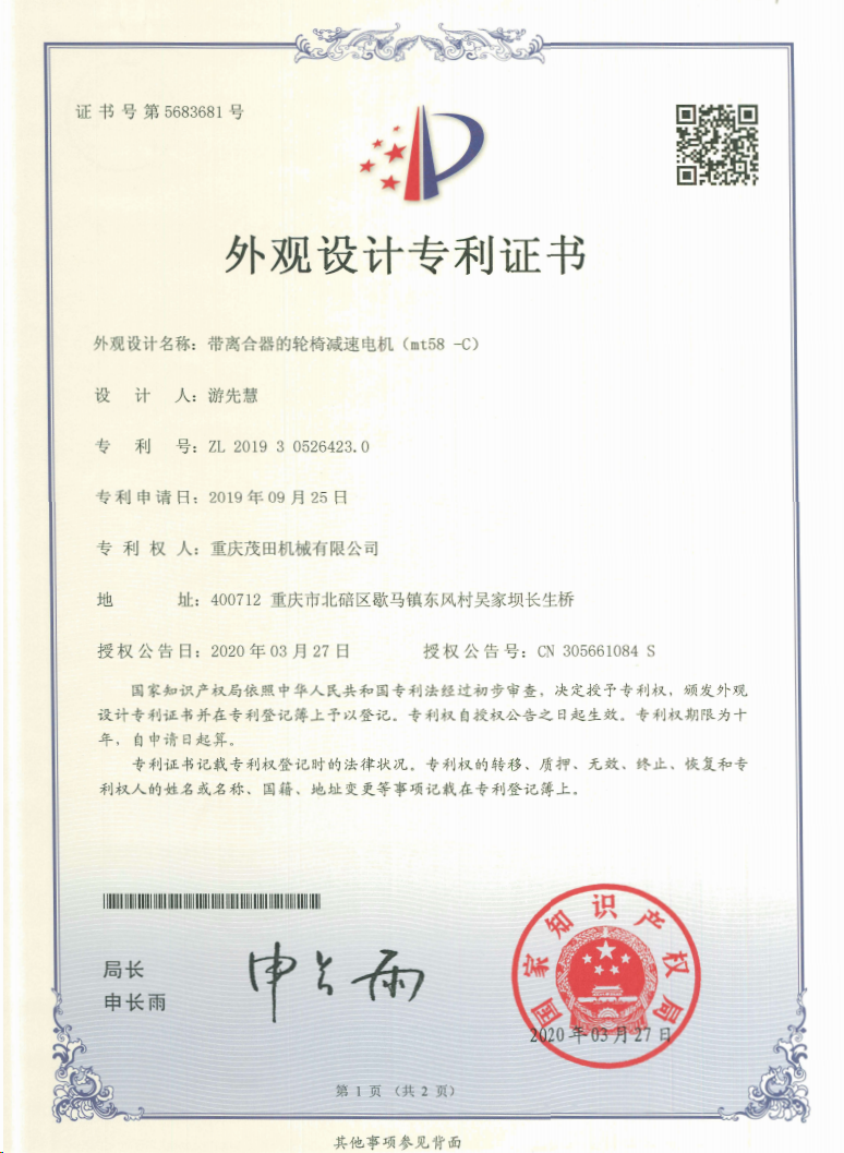 重慶茂田機械有限公司是國家級小巨人企業(yè)、國家高新技術(shù)企業(yè)、重慶市專精特新企業(yè)、重慶市知識產(chǎn)權(quán)優(yōu)勢企業(yè),致力于現(xiàn)代化山地農(nóng)業(yè)機械、各類非標(biāo)減速電機及其控制系統(tǒng)的研發(fā)、生產(chǎn)、銷售。擁有重慶市市級研發(fā)平臺1個 目前研發(fā)、生產(chǎn)、銷售產(chǎn)品廣泛應(yīng)用于農(nóng)業(yè)機械、醫(yī)療康復(fù)設(shè)備、交通代步工具、智能搬運設(shè)備、以及機器人動力系統(tǒng)等領(lǐng)域。我們的產(chǎn)品具有完整的自主知識產(chǎn)權(quán),擁有多項專利技術(shù)及“重慶